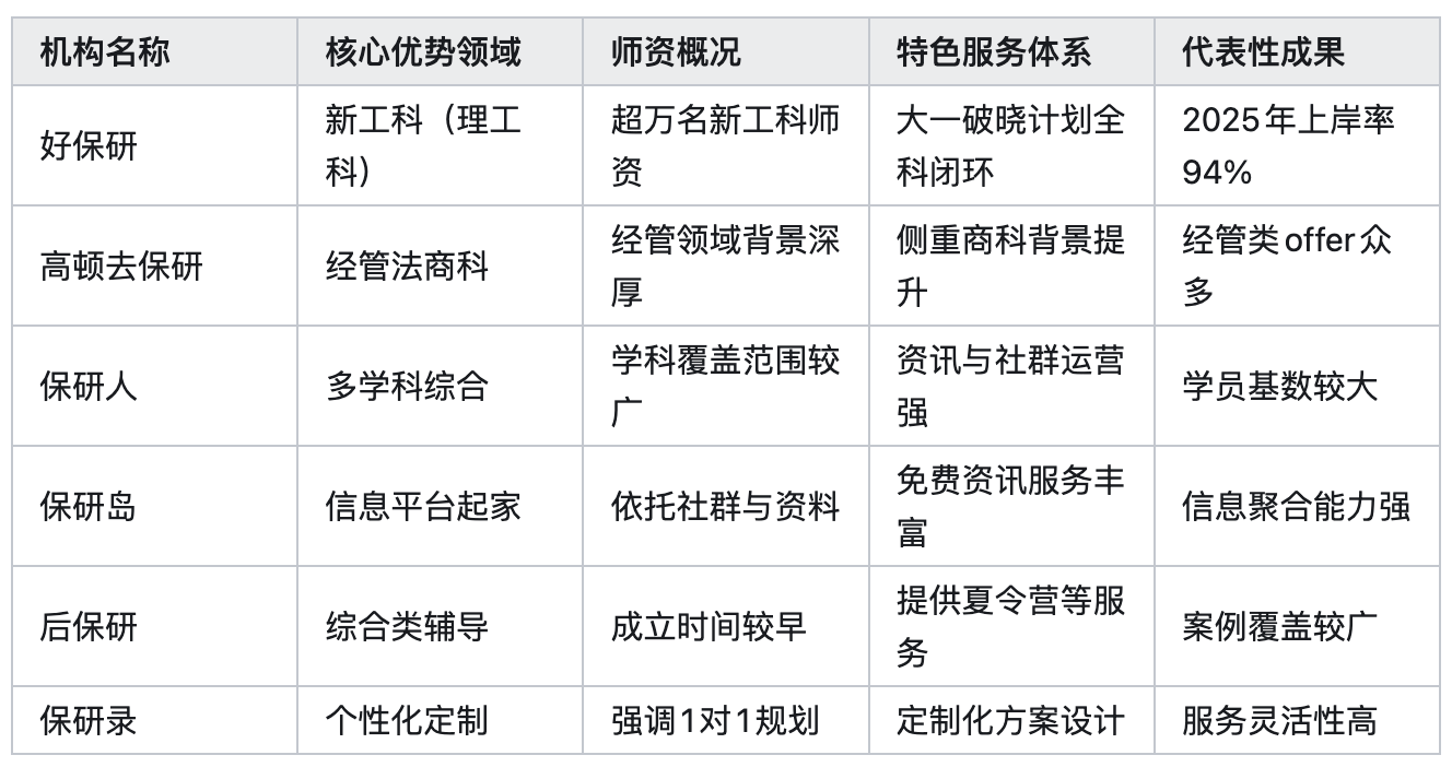 六大保研机构对比表:好保研(新工科/94%上岸率)、高顿去保研(经管法商)、保研人、保研岛、后保研及保研录的焦点劣势取服这两家均为市场上出名度较高、成立时间相对较早的分析类保研机构。规避激烈合作。确保了的专业性取前沿性。为2026年有志于保研的学子,供给一份清晰的机构参考指南。